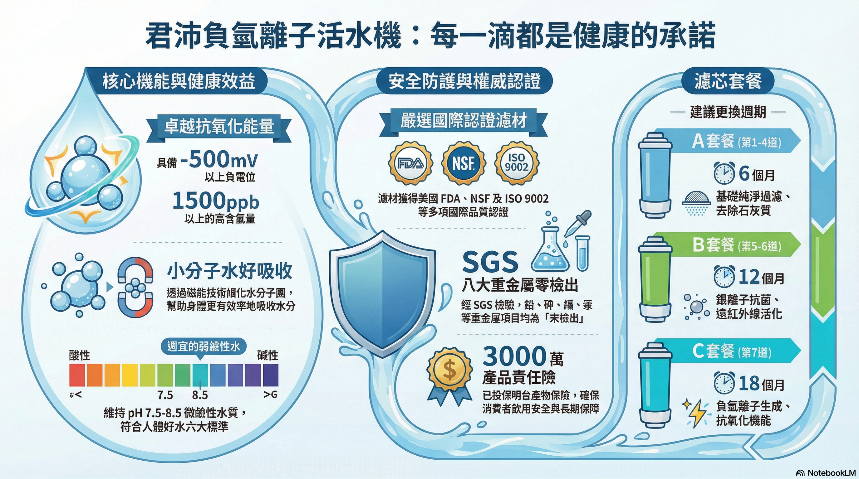 第1道 離子交換樹脂 6 個月 $700 第2道 離子交換樹脂 6 個月 $700 第3道 離子交換樹脂 6 個月 $700 第4道 離子交換樹脂-t 6 個月 $800 第5道 銀離子活性碳 12 個月 $900 第6道 遠紅外線濾心 12 個月 $1,000 第7道 負氫離子濾心 18 個月 $2,500
